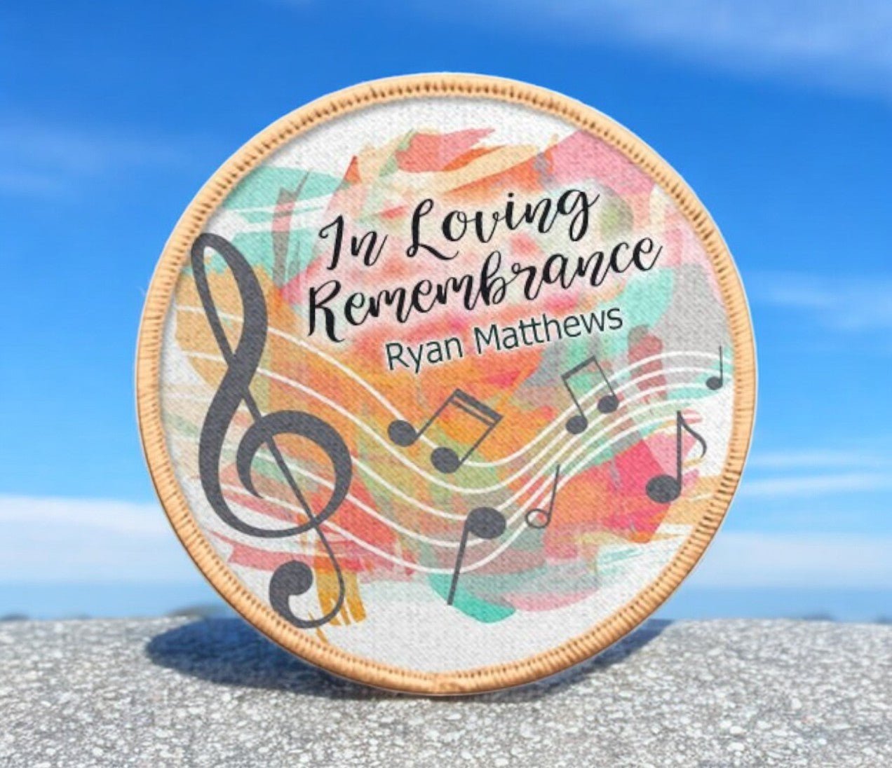 The Musical Notes In Memory Of Patch offers a vibrant and expressive tribute for honoring a loved one who cherished music. This unique, one-of-a-kind memorial patch features a lively music theme with musical notes set against a colorful background, all framed with coordinating border stitching for a polished finish. Its energetic design makes it an ideal choice for someone who loved to sing, play an instrument, compose, or simply enjoyed the beauty of music. This patch can be placed on jackets, tote bags, memorial quilts, or framed displays as a meaningful keepsake celebrating their passion.
