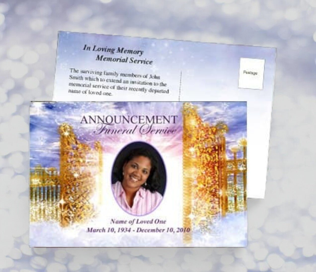 Radiance Funeral Announcement Postcard Template