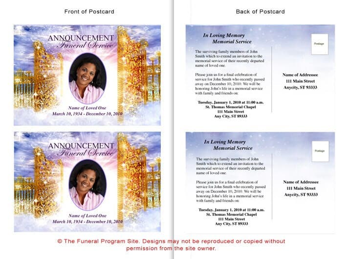 Funeral Postcard Announcement Template Features