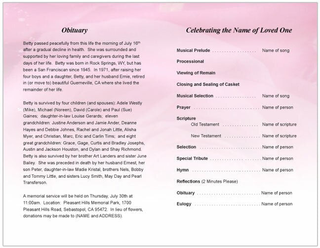 Creating a funeral bulletin using a template not only streamlines the process during a difficult time but also provides a tangible memory for attendees to cherish. It is a meaningful way to celebrate the life of a loved one and share their story with friends and family during the memorial service.