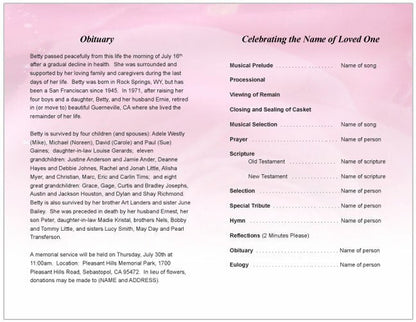 Inside the Petals Funeral Program Template, the layout offers a subtle background that coordinates beautifully with the exterior design. It provides a space to include essential details like the order of service, a poem, or a tribute, ensuring that the program is both meaningful and visually appealing. This customizable template is a wonderful choice for creating a lasting memory of a loved one’s life and legacy.