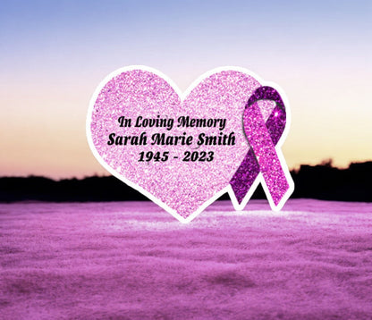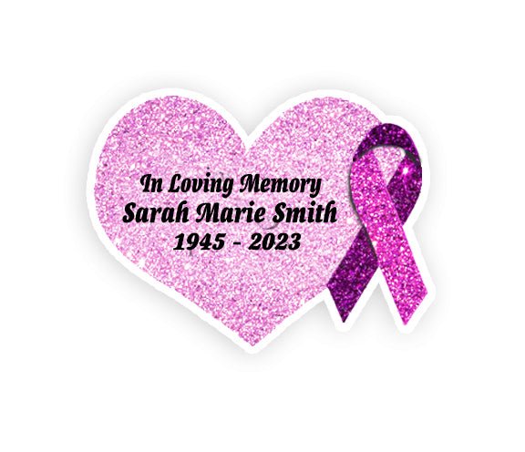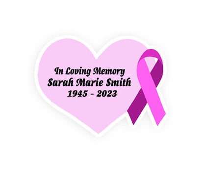 The Funeral Program Site presents the Pink Cancer Ribbon Heart Pin, a heartfelt symbol of support, awareness, and remembrance for those touched by breast cancer. Worn proudly during Breast Cancer Awareness Month in October and year-round, this pin honors survivors, memorializes loved ones, and inspires continued advocacy and hope for a cure. Featuring a classic pink ribbon overlaying a large heart, the Pink Cancer Ribbon Heart Pin can be personalized with up to three lines of custom text, creating a meaningful tribute to carry or share. Each pin is crafted from durable resin and is available in your choice of a glitter or matte finish. Measuring approximately two and a half inches wide by two inches high with a secure clasp, these pins are sold in packs of ten. Choose the Pink Cancer Ribbon Heart Pin today and wear a lasting symbol of love, unity, and hope.
