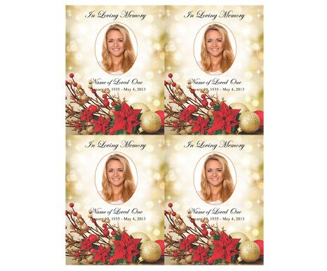 The Ponsietta Small Memorial Card Template features a striking Ponsietta floral-inspired design, accented with touches of sparkling light to create a beautiful and vibrant tribute. The rich colors of the Ponsietta flowers evoke warmth and remembrance, symbolizing the beauty and strength of your loved one’s life.