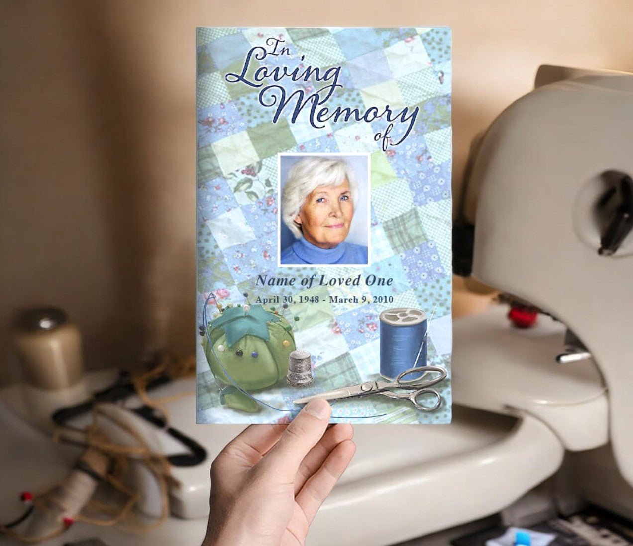 The Quilt Funeral Program Template is a heartfelt tribute designed for those who cherished the art of quilting and craftsmanship. Featuring a beautiful hobby-inspired background, this template highlights handcrafted elements that reflect the warmth, creativity, and dedication of a quilter. The delicate and thoughtful design makes it a perfect way to honor a loved one’s passion for quilting.