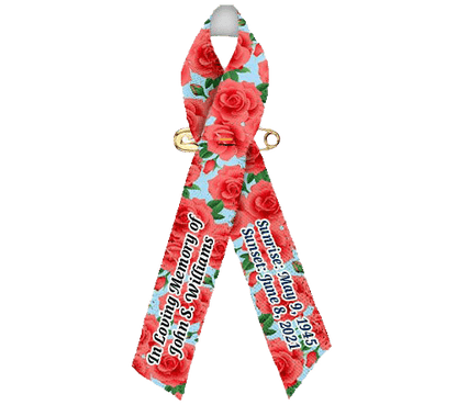 Red Roses Custom Awareness Ribbon is a beautifully designed tribute that features a vibrant pattern of red roses set against a soft blue background. Red Roses Custom Awareness Ribbon offers a striking and elegant way to commemorate a loved one with timeless floral beauty and grace.