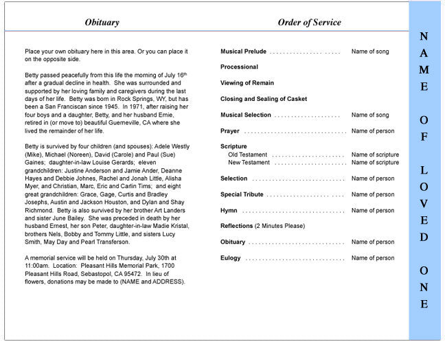 Enhance your funeral experience with our template editing service and have our graduated funeral program for you. Here's what's included: