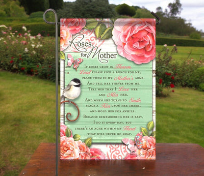Perfect for display at a gravesite or in a memorial garden, the Roses For Mother Garden or Cemetery Flag serves as a timeless expression of devotion. Its beautiful design and meaningful message create a comforting reminder of a mother’s love that lives on forever in the heart.