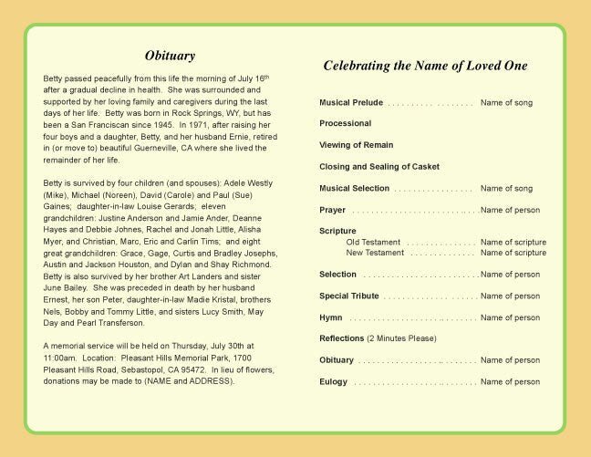 Creating a funeral bulletin can be a poignant way to honor a loved one during a memorial service. Using a template can simplify this process, allowing you to focus on personalizing the content that celebrates the life and memories of the deceased. Here's a step-by-step guide on how to create a funeral bulletin using a template.