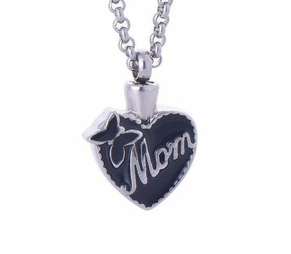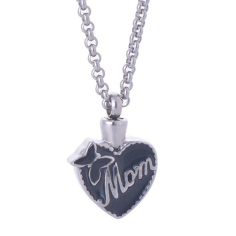 Designed to hold a small portion of cremation ashes inside, this necklace provides a quiet and comforting connection that can be carried close to the heart. The Stainless Steel Mom Butterfly Urn Necklace serves as a loving keepsake and a gentle reminder of a bond that remains forever.