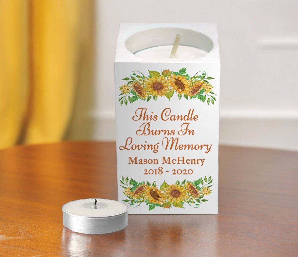 Sunflowers Personalized Mini Memorial Tea Light Candle Holder