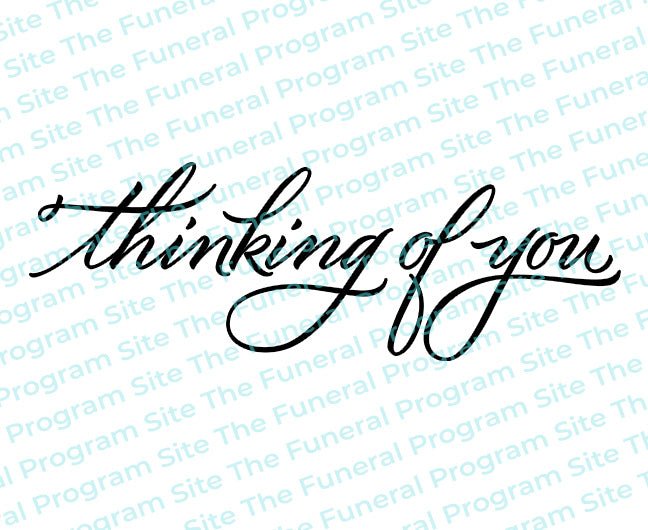 The Thinking of You Condolences Word Art from The Funeral Program Site offers a beautifully scripted and heartfelt expression of sympathy designed to bring warmth and emotional comfort to any memorial layout. Its flowing script delivers a meaningful message that feels gentle and sincere, making it a perfect addition to funeral programs, memorial cards, tribute pages, and personalized remembrance projects. Set against a fully transparent background, this versatile word art can be layered seamlessly over any color palette, textured design, or photo-based backdrop, allowing it to elevate your layout with ease and elegance. Whether you are enhancing one of our professionally designed templates or adding it to your own creation, the Thinking of You Condolences Word Art provides a soothing and compassionate touch that honors the memory of a loved one with grace and expressive simplicity.