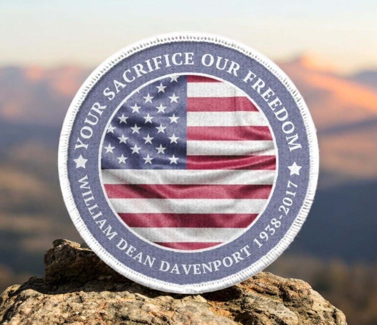 The US Patriotic In Memory Of Patch offers a heartfelt and distinguished way to honor a loved one who proudly served. Designed with a military-inspired theme, this unique patch features a round center showcasing the United States flag, framed by coordinating border stitching for a clean and striking presentation. Crafted with care, it makes a meaningful tribute for veterans, active-duty service members, or anyone deeply connected to the U.S. armed forces. This special keepsake can be added to jackets, bags, memorial displays, or framed presentations as a lasting symbol of respect and remembrance.