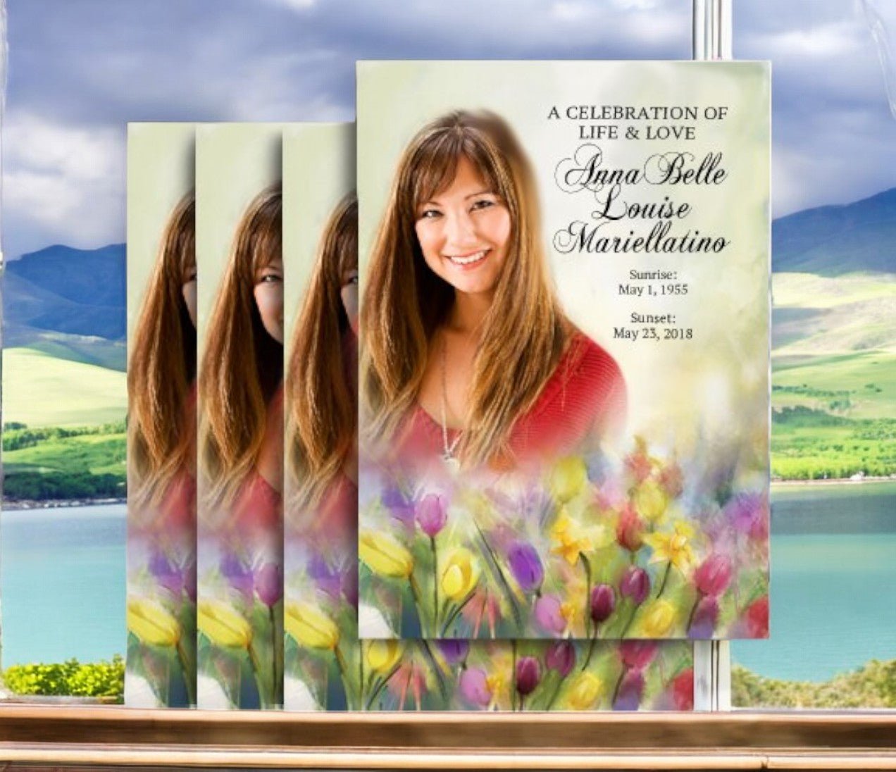 Add a gentle touch of serenity to any memorial with the Water Lilies Funeral Postcard Design & Print (Pack of 50) from The Funeral Program Site. This elegant design showcases colorful lilies gracefully bordering the card, complemented by a soothing green gradient background that radiates peace and beauty. Whether you include a photo or keep the layout simple, it’s ideal as a postcard, prayer card, or memorial handout. Each 4" x 6" card is printed double-sided on premium card stock with full, edge-to-edge color for a rich and polished finish. This full design and print service ensures professional quality and heartfelt presentation, creating a lasting keepsake of comfort and remembrance.