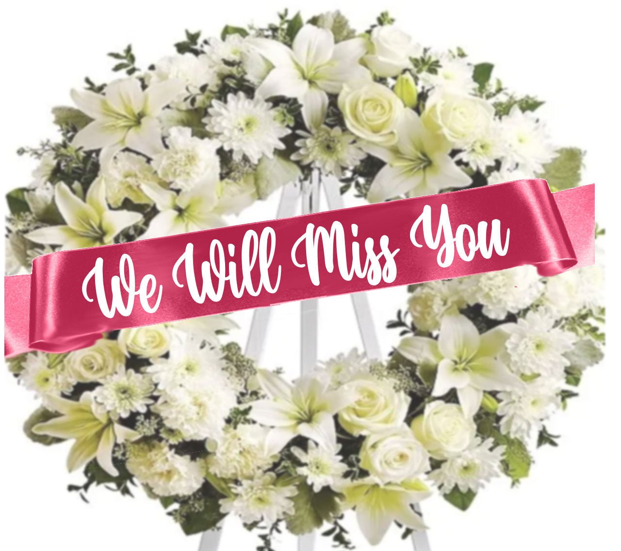 We Will Miss You Funeral Flowers Ribbon Banner
