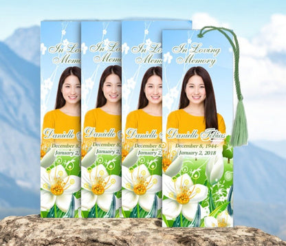Professionally printed on premium cardstock, the Blossom Memorial Bookmark Done For You Design & Print (Pack of 50) beautifully combines natural elements with elegant simplicity. Optional tassels or lamination can be added for a refined and lasting finish, creating a meaningful keepsake that family and friends will treasure as a symbol of peace and remembrance.